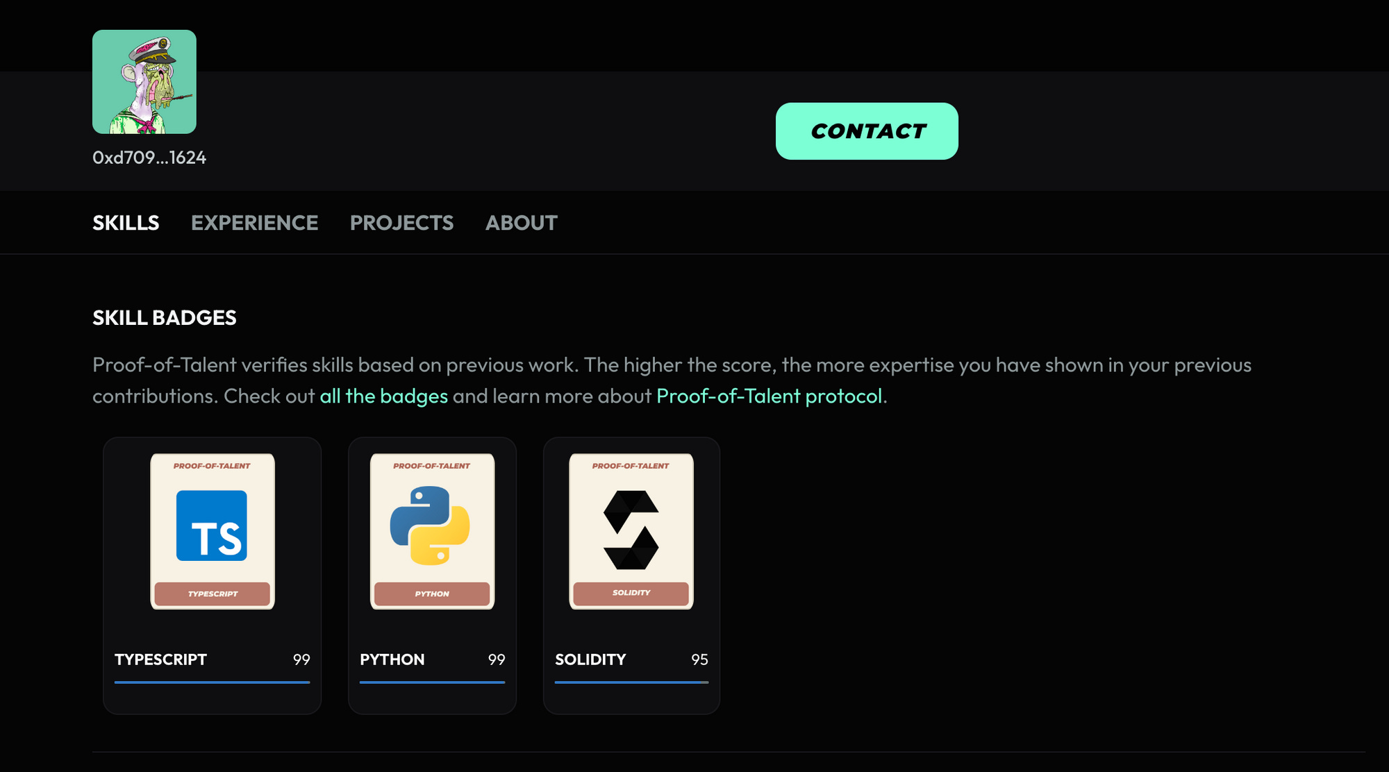 Mint your Proof-of-Talent badges and showcase your skills along with your previous work.