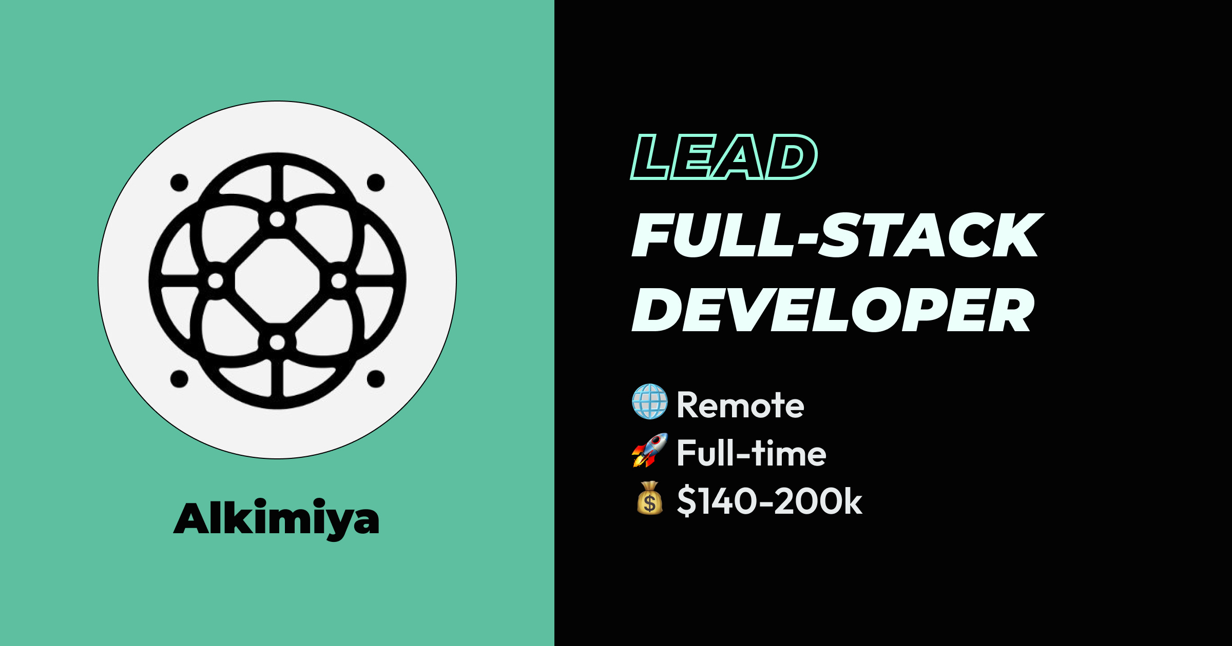 Alkimiya is looking to hire a Full Stack Developer to join their team. As their full-stack lead, you will have a high degree of ownership and a unique ability to shape our technical direction.